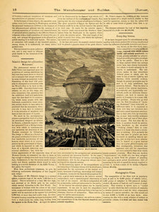 This is an original 1891 one-page print article about a proposed Design for a Columbus Monument for the 1893 Chicago World's Fair. This article features an illustration of the colossal monument designed by Alberto de Palacio, a Spanish engineer, who has presented it as a fitting conception with which to commemorate and symbolize the discovery of the Western Continent by Christopher Columbus. The design offered a view of the colossal sphere, which is mounted on a base of 262 feet high, and is crowned at its North Pole by the caravel which carried Columbus to the New World. The monument is brilliant with the colors of the continents, oceans and islands of the terrestrial sphere.