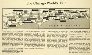 1933 Print Chicago World's Fair Maya Temple Map Travel Seminole Village FZ2