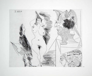 This is an original 1970 black and white heliogravure of a 1968 etching by Pablo Picasso.