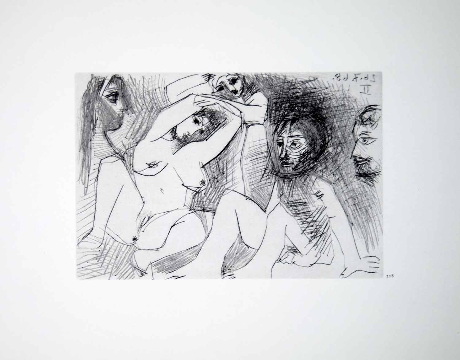 1970 Heliogravure Picasso Nudes Abstract Art Female Male Figure Dry Point P347B