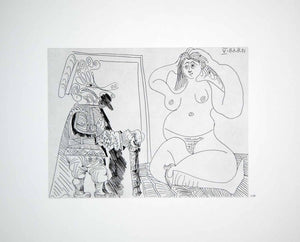 1970 Heliogravure Picasso Seated Nude Art Female Figure Musketeer Etching P347B