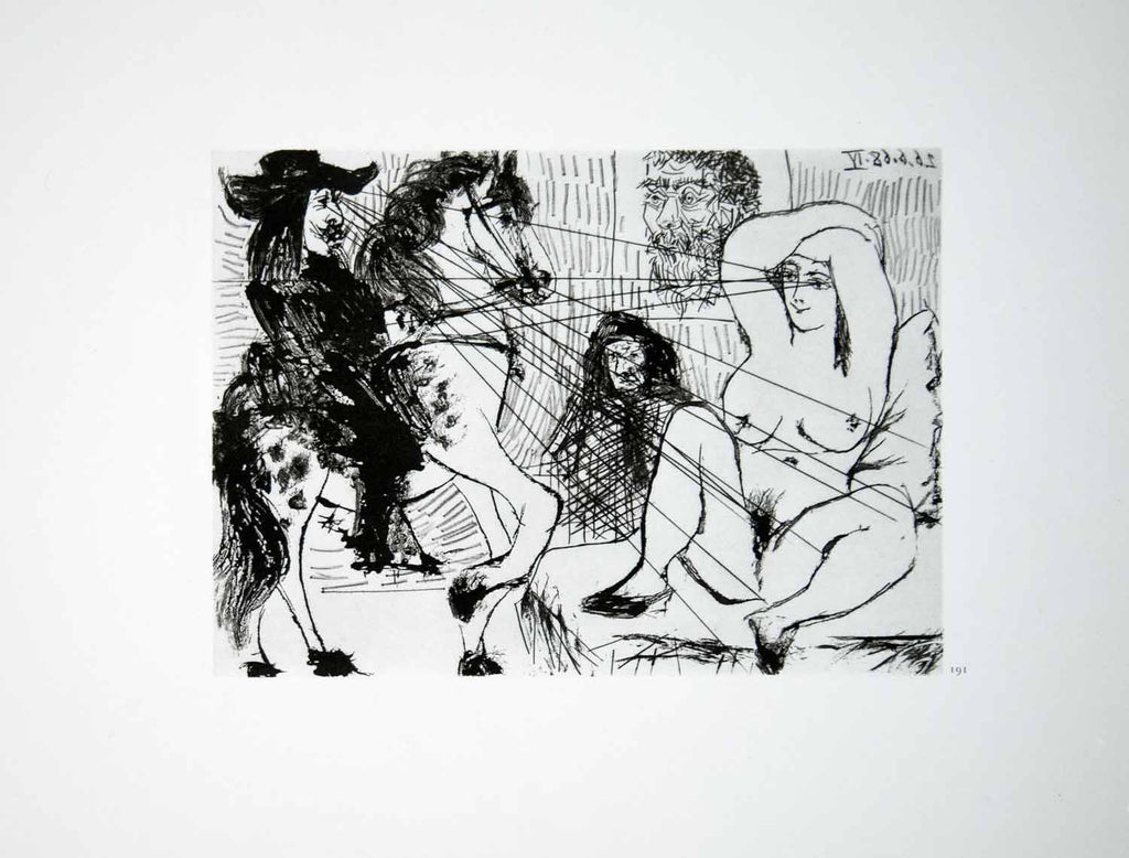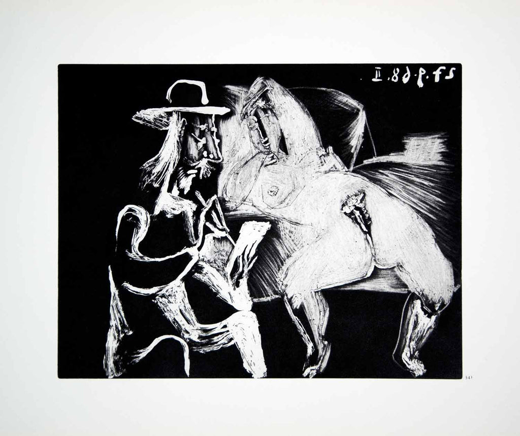 1970 Heliogravure Picasso Nude Female Figure Horse Caballero Faces Erotic P347B