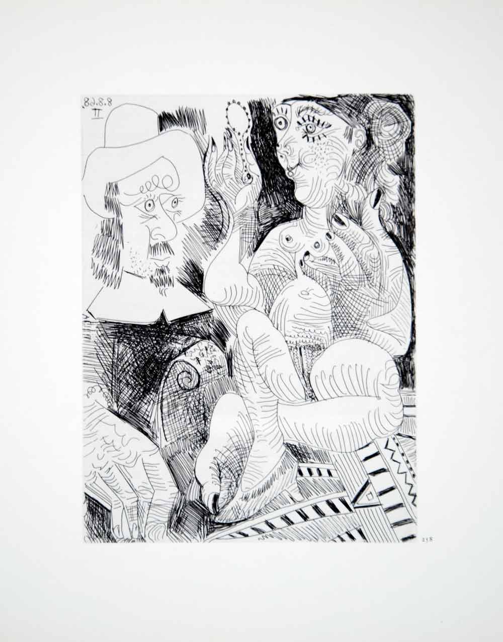 1970 Heliogravure Picasso Nude Female Figure Man Smoking Pipe Erotic Art P347B