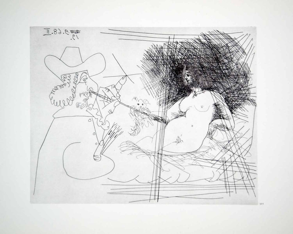 1970 Heliogravure Picasso Nude Artist Model Painter Painting Easel Etching P347B