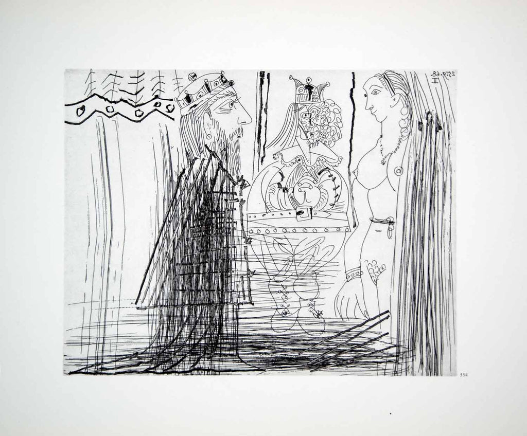 1970 Heliogravure Picasso Nude Female Figure King Abstract Etching Art P347B