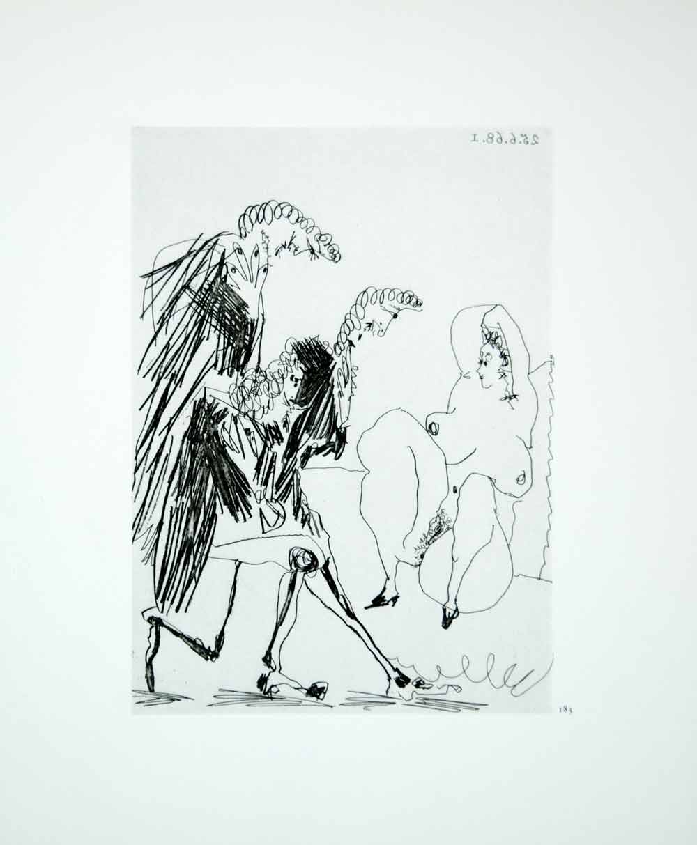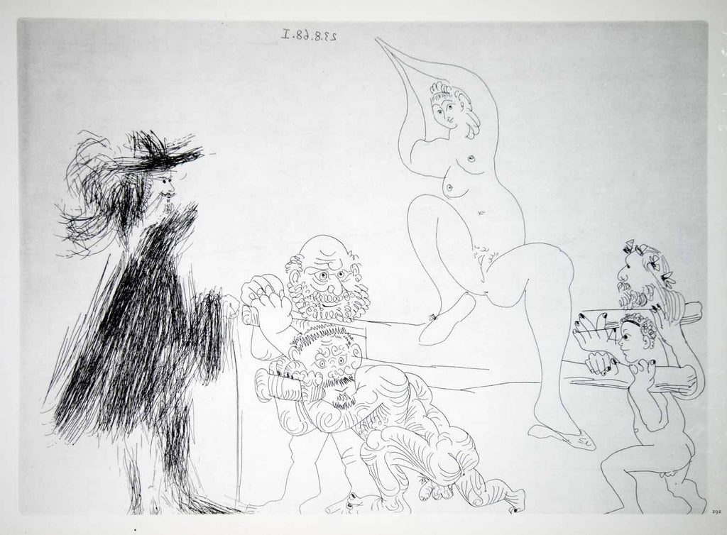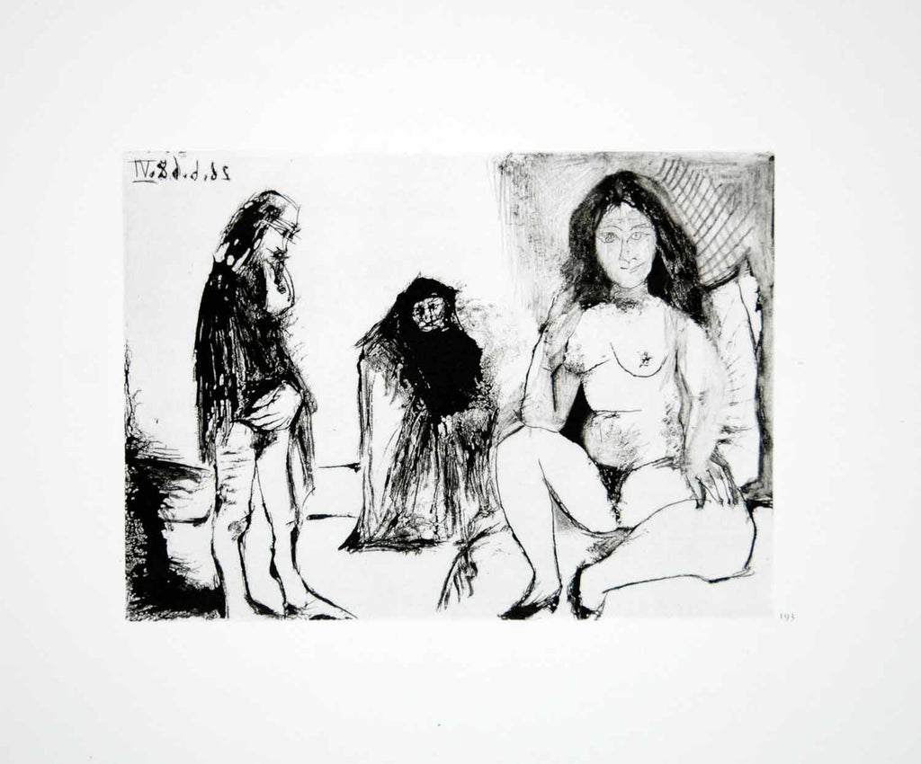 1970 Heliogravure Picasso Nude Female Figure Seated Males Erotic Aquatint P347B