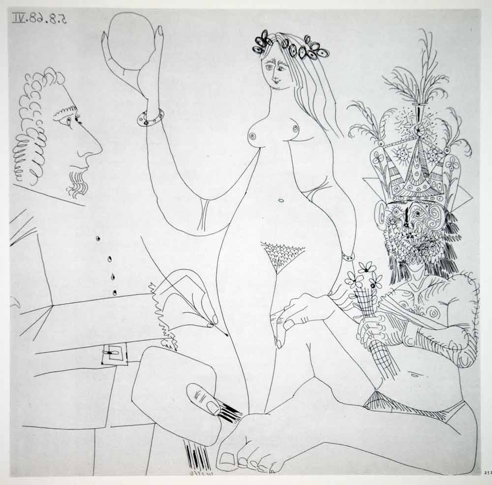 1970 Heliogravure Picasso Nude Female Litter Bearers Musketeer Abstract P347B