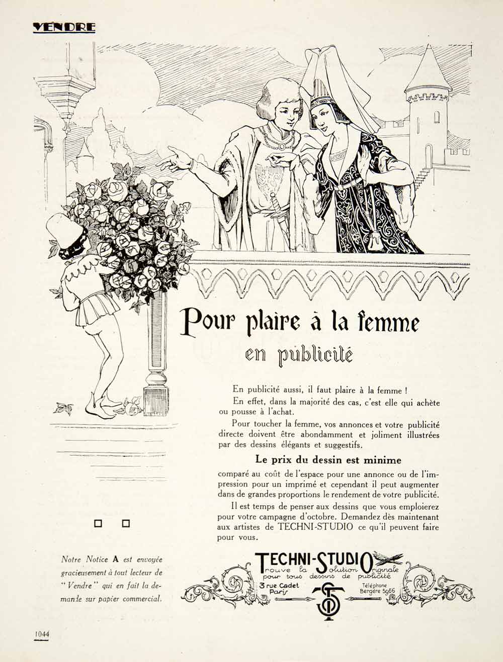 1924 Ad Techni-Studio Medieval Advertising French Roses Dame Lady Knight VEN3