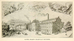 This is an original 1893 black and white halftone print of a sketch of the Dolgeville, New York factories of Alfred Dolge, manufacturer of piano felt and felt shoes.