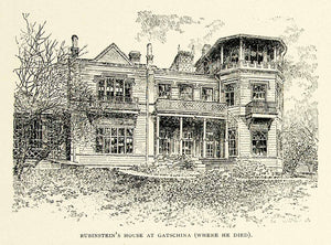 1895 Print Anton Rubinstein Russian Pianist Composer Home House Gatchina Russia