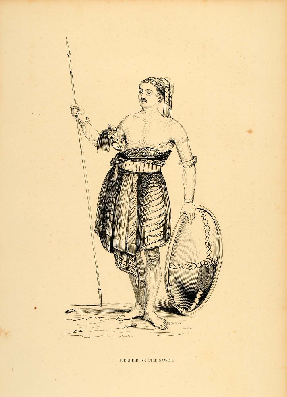 1843 Engraving Costume Warrior Savu Islands Indonesia - ORIGINAL CW1