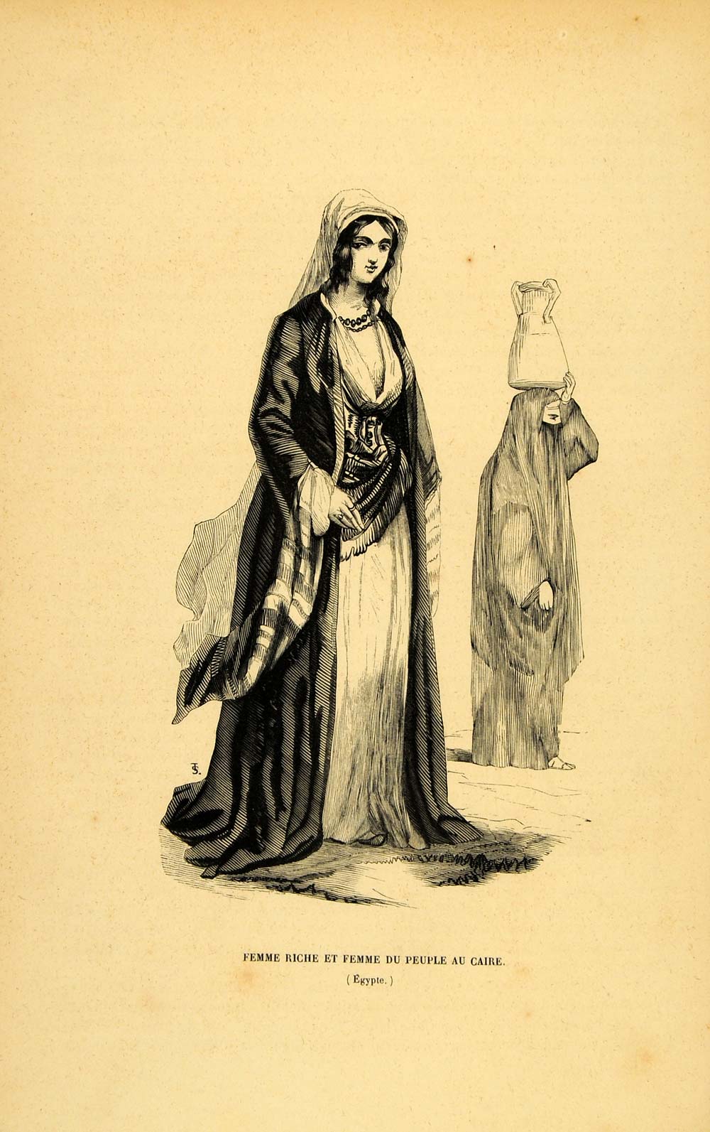 1844 Engraving Costume Robe Egyptian Lady Peasant Woman - ORIGINAL CW3