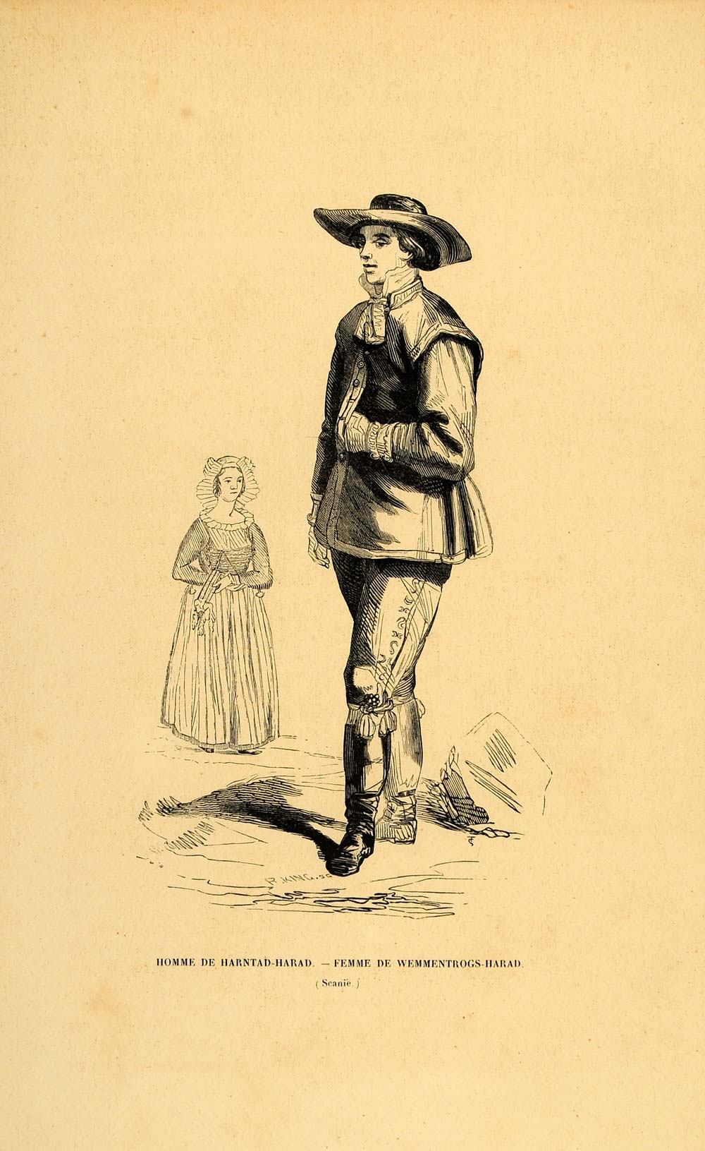 1844 Engraving Costume Swedish Sweden Man Hat Boots - ORIGINAL CW4