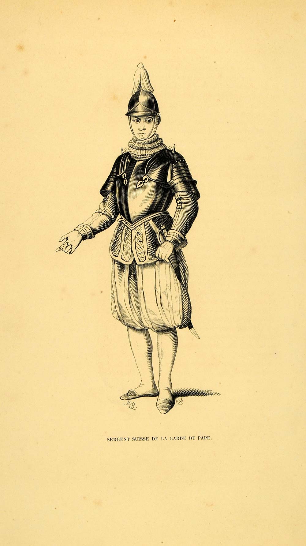 1844 Engraving Costume Papal Swiss Guard Uniform Pope - ORIGINAL CW4