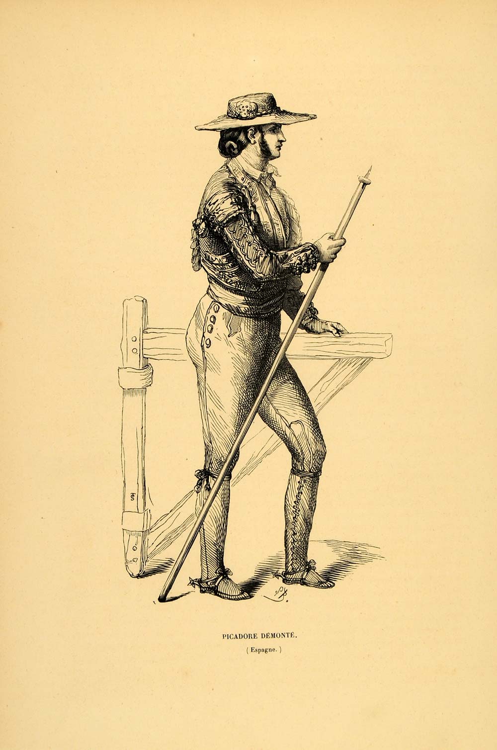 1844 Engraving Costume Spanish Picador Bullfight Spain - ORIGINAL CW4
