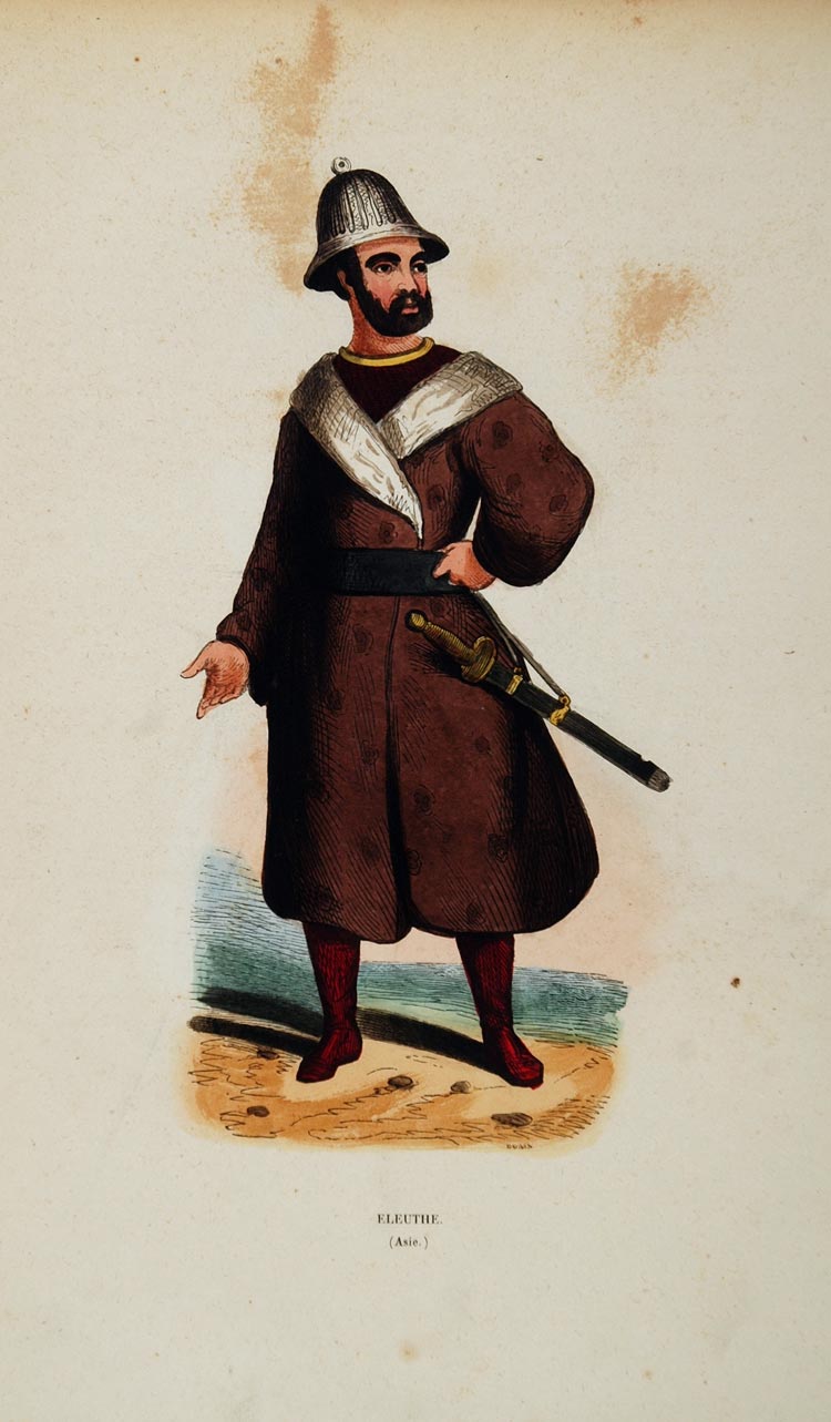 1845 Print Costume Elyut Eleuth Man Sword Central Asia - ORIGINAL ACOST