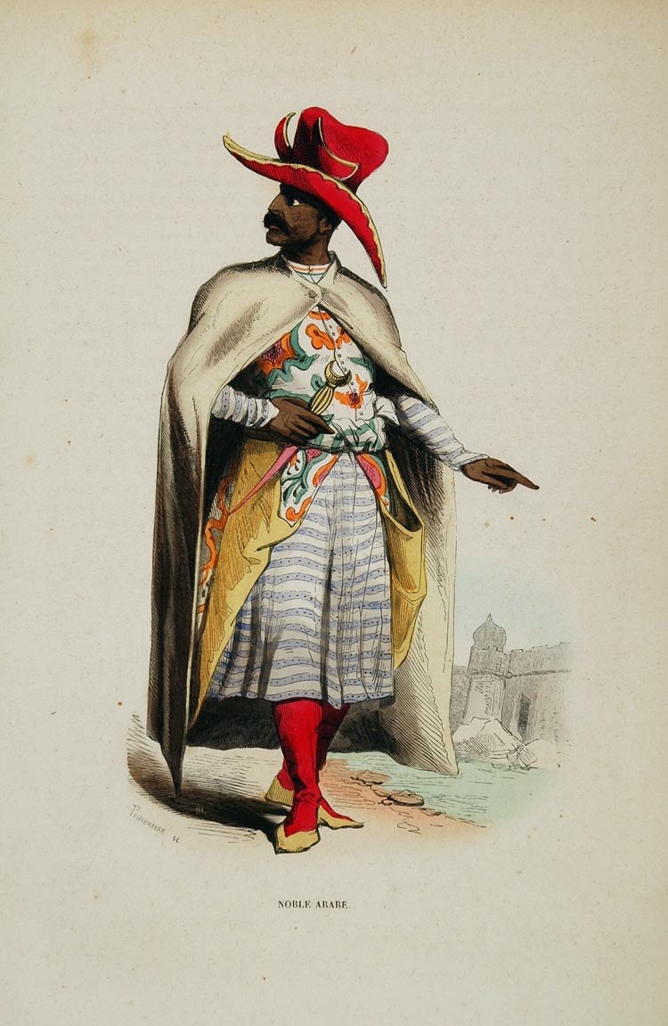 1845 Print Costume Arab Noble Arabian Man Red Hat Cloak - ORIGINAL ACOST