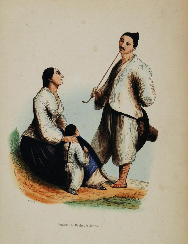1845 Print Costume Japanese Family Fisherman Child NICE - ORIGINAL ACOST