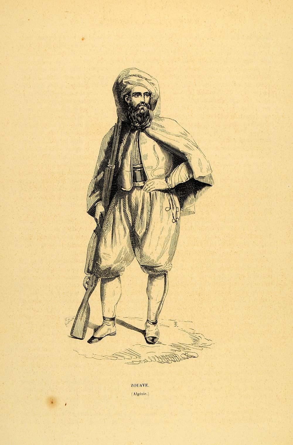 1844 Engraving Costume Zouave Soldier Gun Man Algeria - ORIGINAL CW3