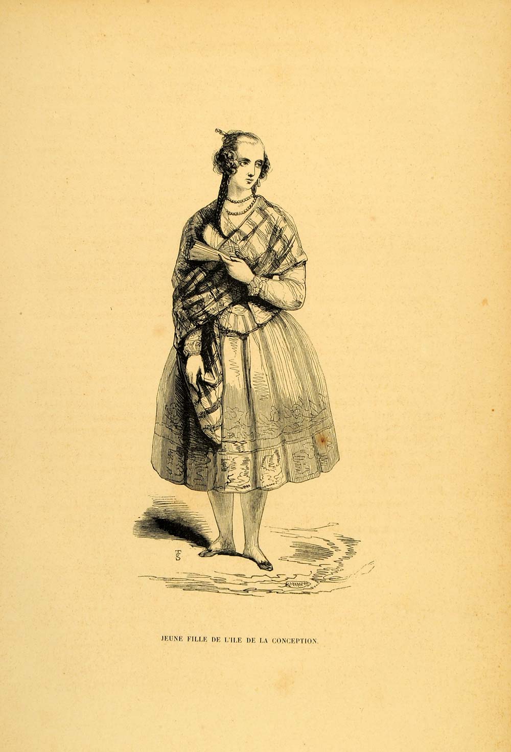 1844 Engraving Costume Woman Conception Island Shawl - ORIGINAL CW3