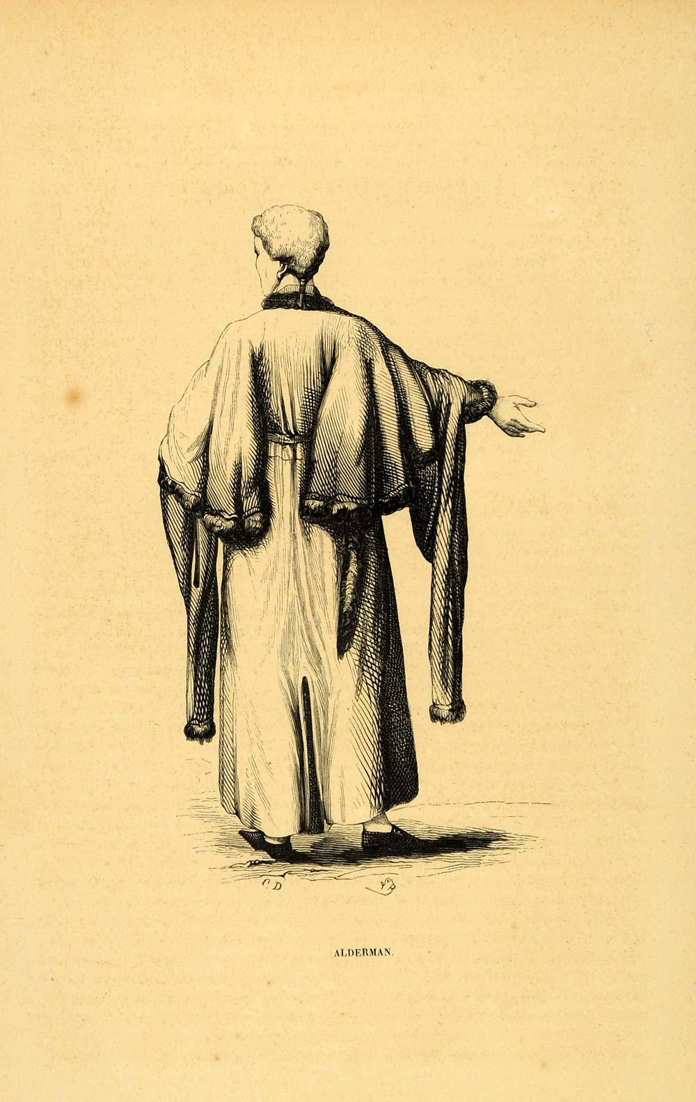 1844 Engraving Costume Welsh Alderman Wales Official - ORIGINAL CW4