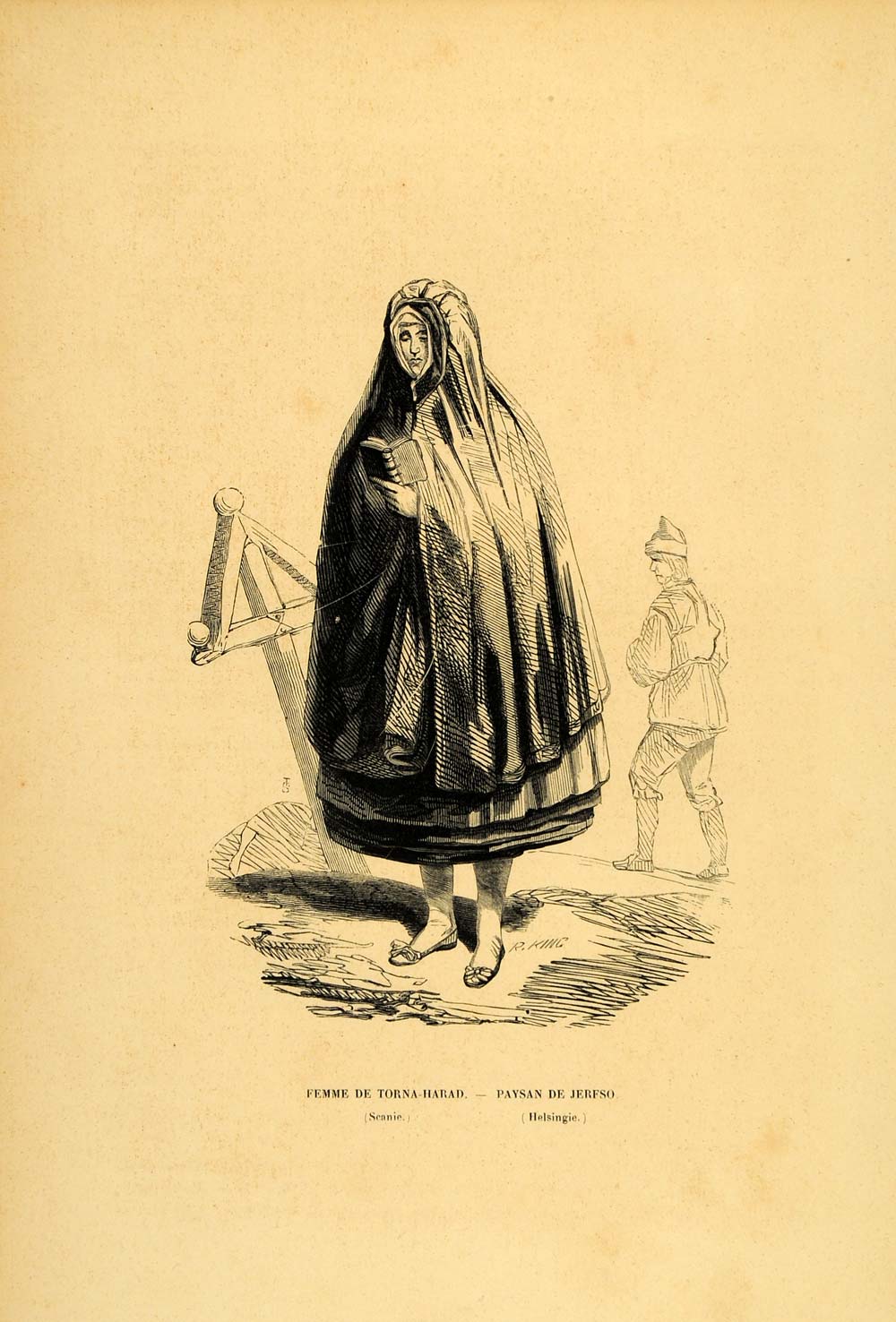 1844 Engraving Costume Swedish Sweden Woman Cloak - ORIGINAL CW4