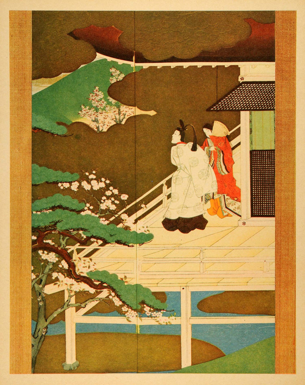 1944 Print Landscape Architecture Fan Costume Japanese Girls Artwork Fashion FZ7