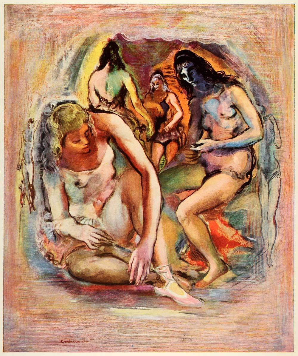 1945 Print New York City Womans Dressing Room Nude Watercolor Jon Corbino XAA5