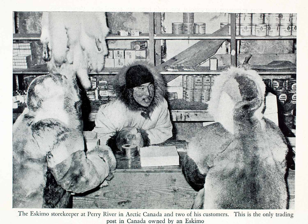 1951 Halftone Print Eskimo Inuit Perry River Canada Arctic Store Trading XGBA8