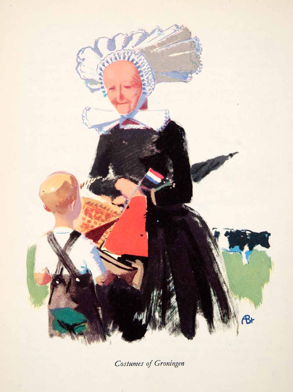 1951 Photolithograph Groningen Netherlands Holland Dutch Costume Headdress XGHC4