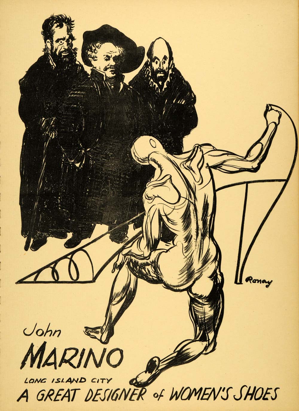 1952 Original Lithograph John Marino Stephen Ronay Stage Nude Shoe Design AEF3
