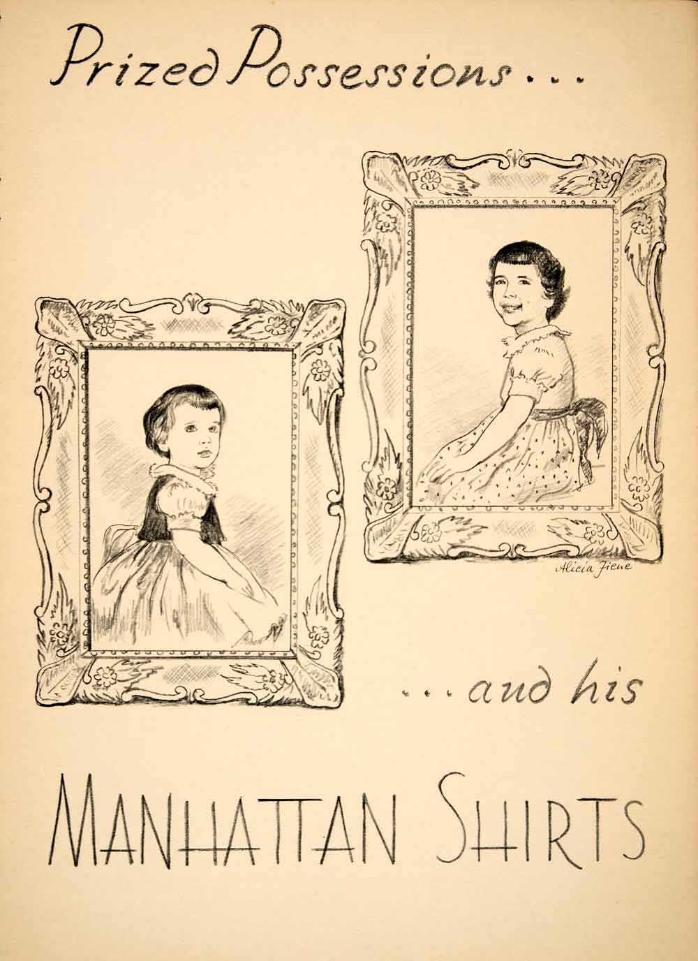 1953 Lithograph Alicia Fiene Art Daughters Frame Manhattan Shirts Fashion AEFA1