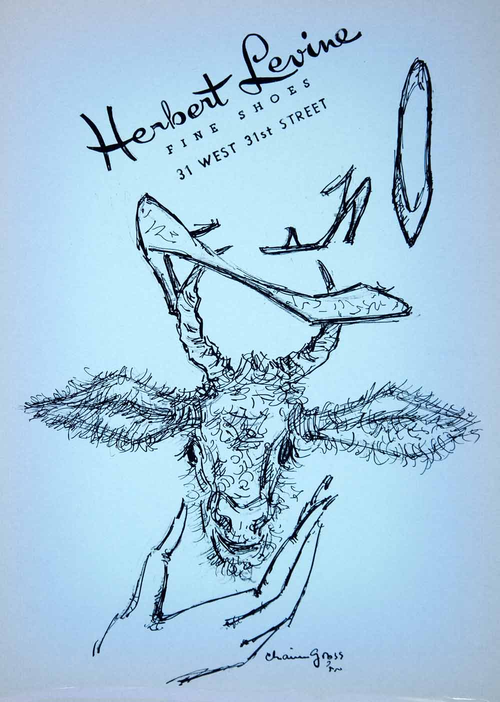 1954 Lithograph Chaim Gross Art Herbert Levine Shoes Ladies High Heels NYC AEFA2