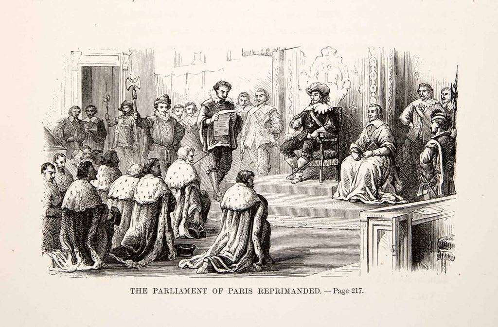 1875 Woodcut Alphonse Neuville Louis XIII Parliament Paris Cardinal XEA6
