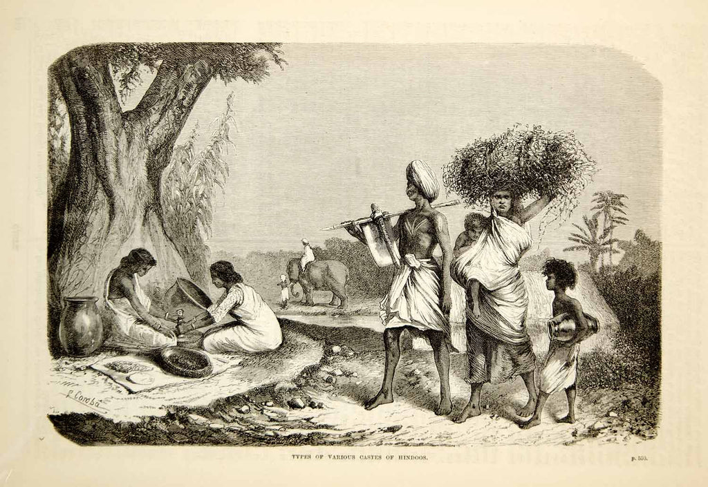 1876 Wood Engraving Hindu Castes India Men Woman Child Boy Costume Indian TWW1