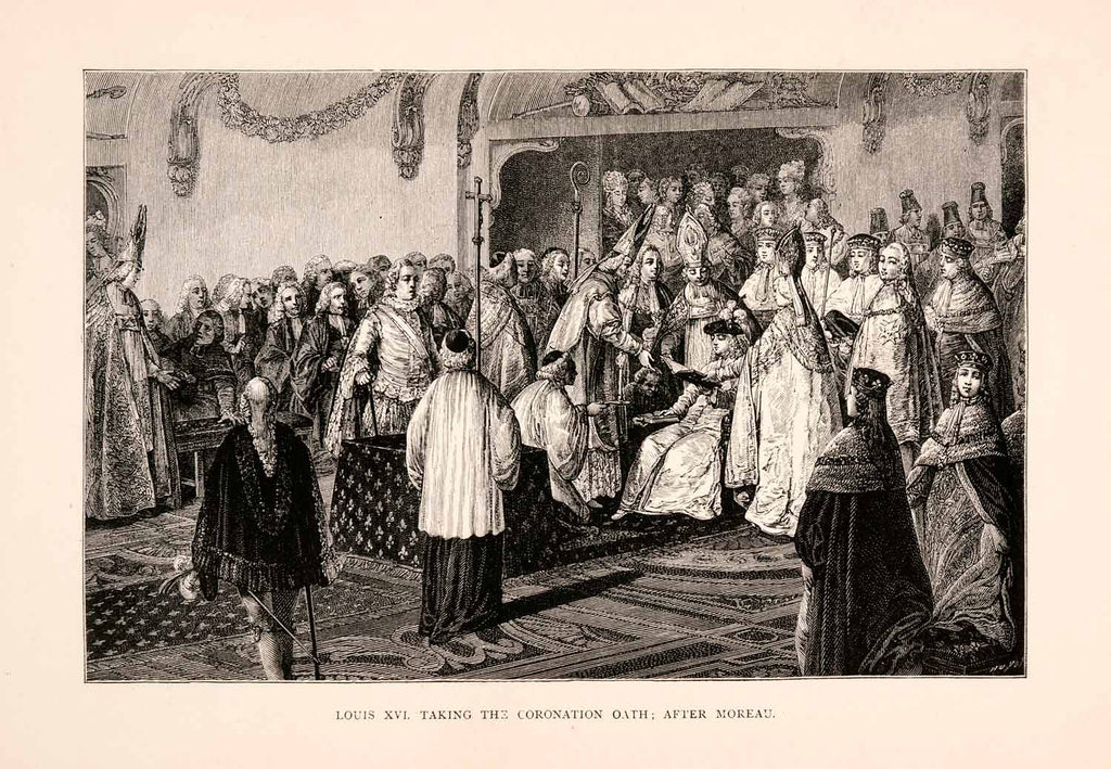 1876 Wood Engraving Louis XVI Coronation Moreau Sermon Oath Moreau XGGA9