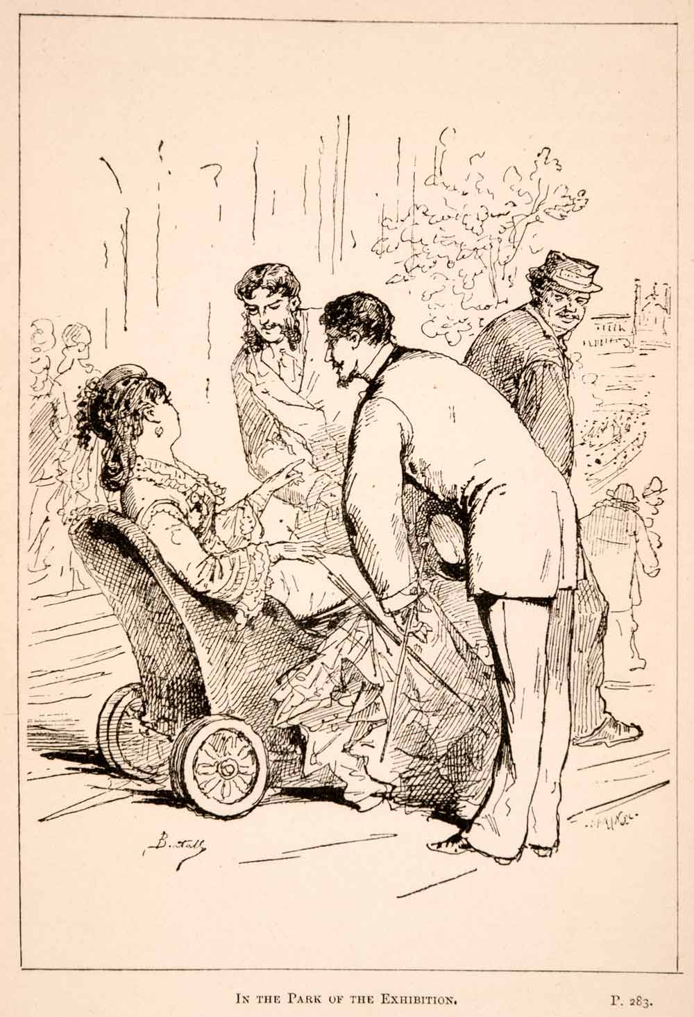 1882 Wood Engraving Exposition Universelle Paris Costume Park Chair XGNA8