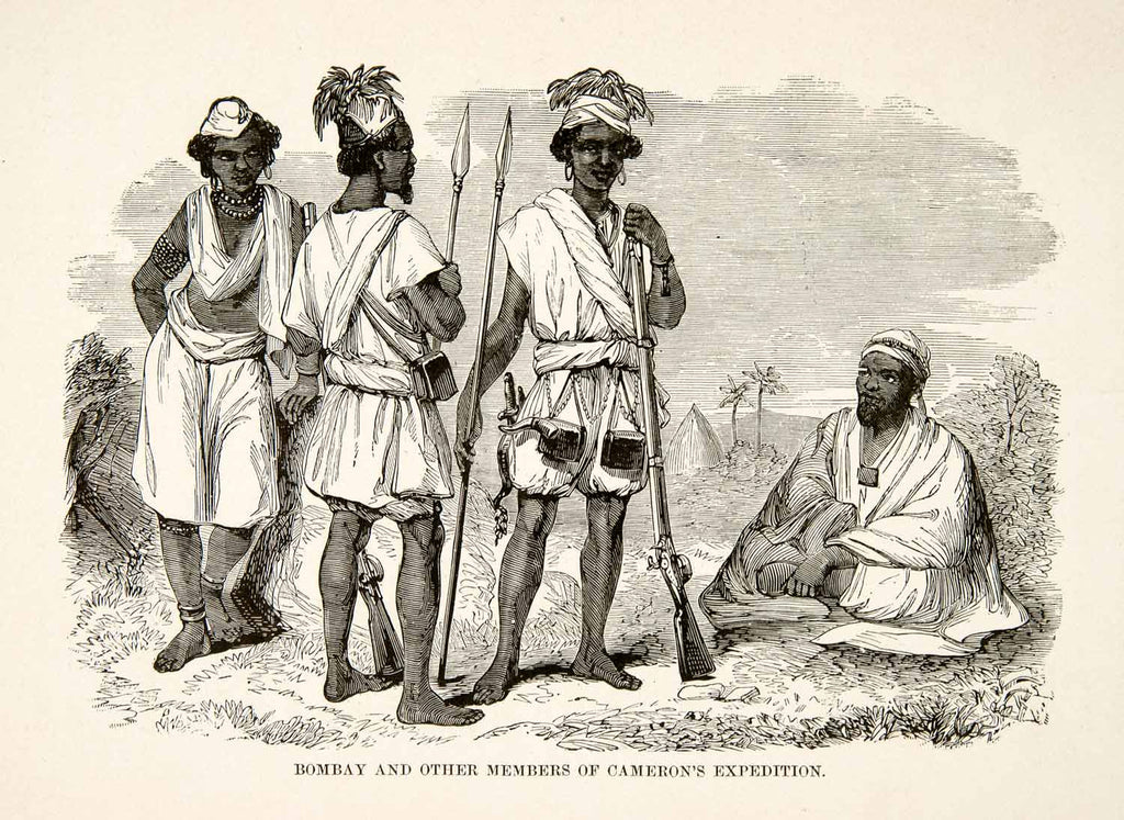 1884 Wood Engraving Cameron Africa Expedition Explorer Spear Rifle Gun XGTA6