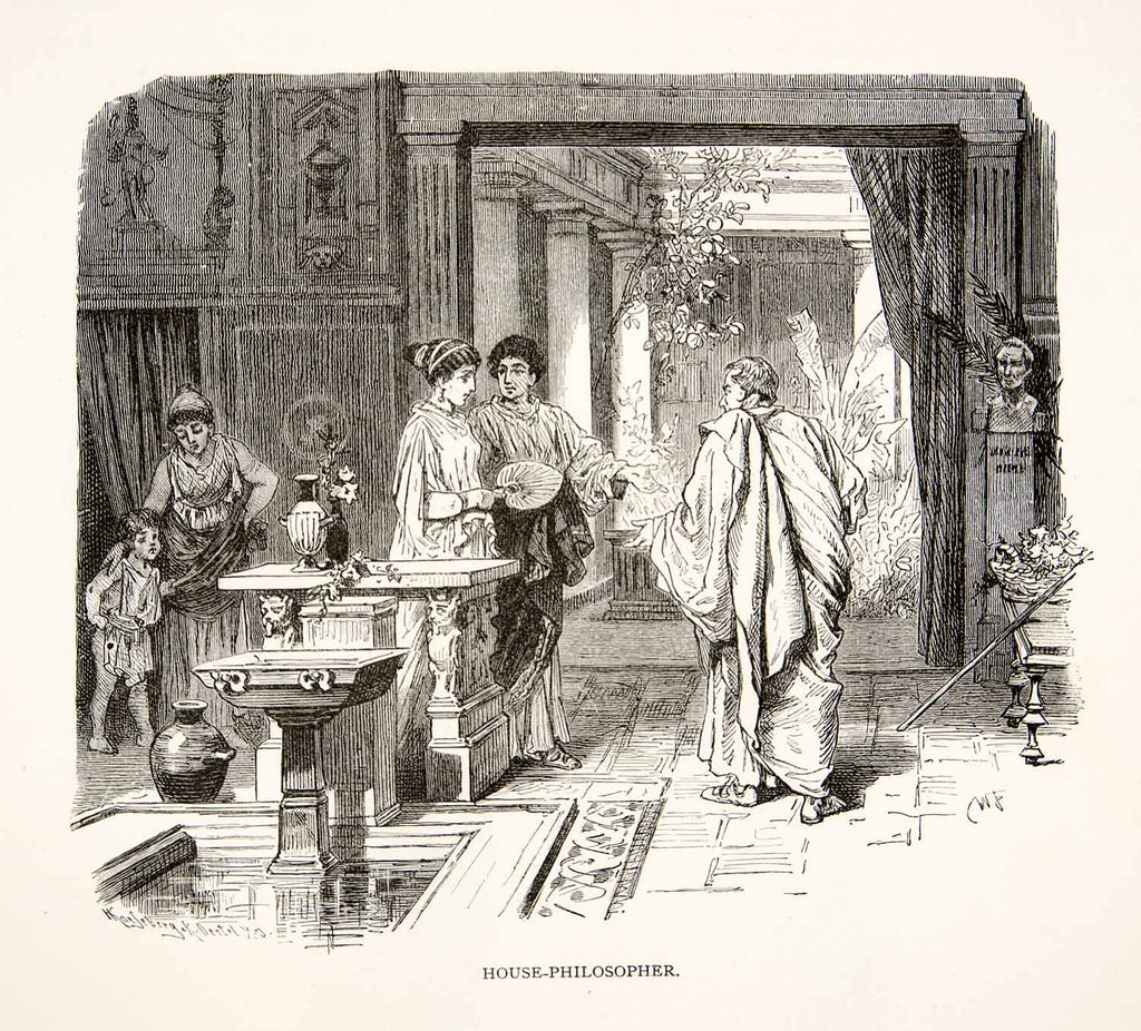 1886 Wood Engraving House Philosopher Ancient Roman Rome Italy Costume XGHC6