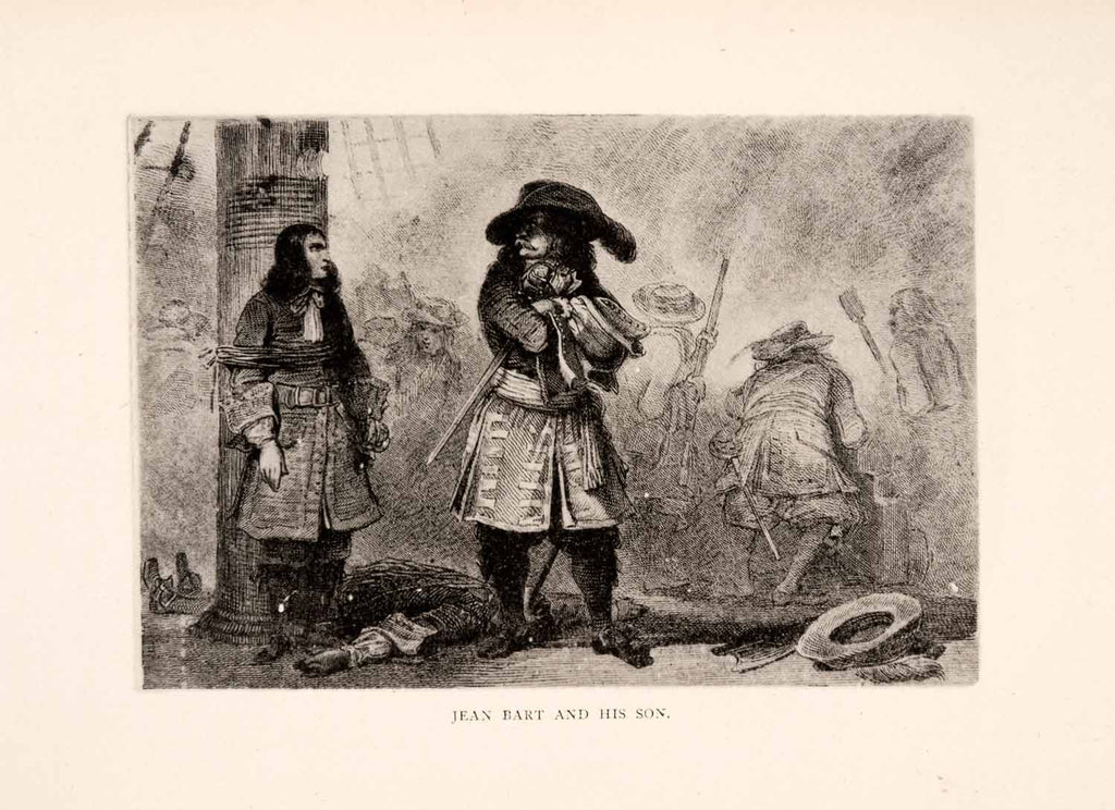 1887 Lithograph Jean Bart Buccaneer Flemish Navy Costume Pirate Corsair XEA5