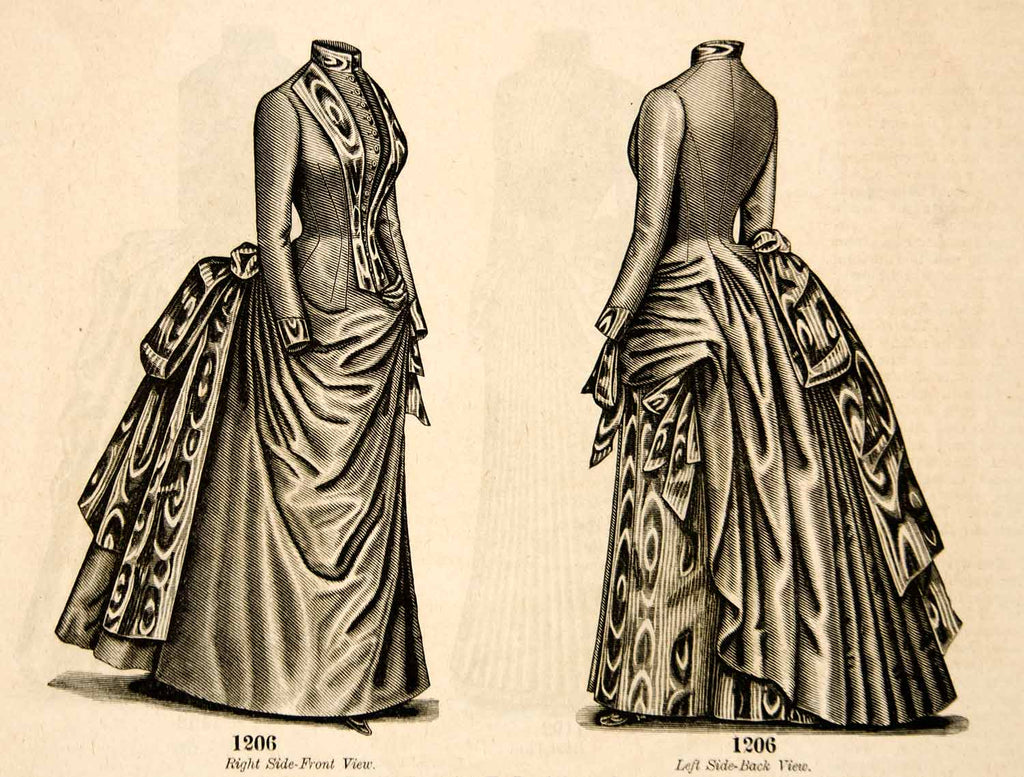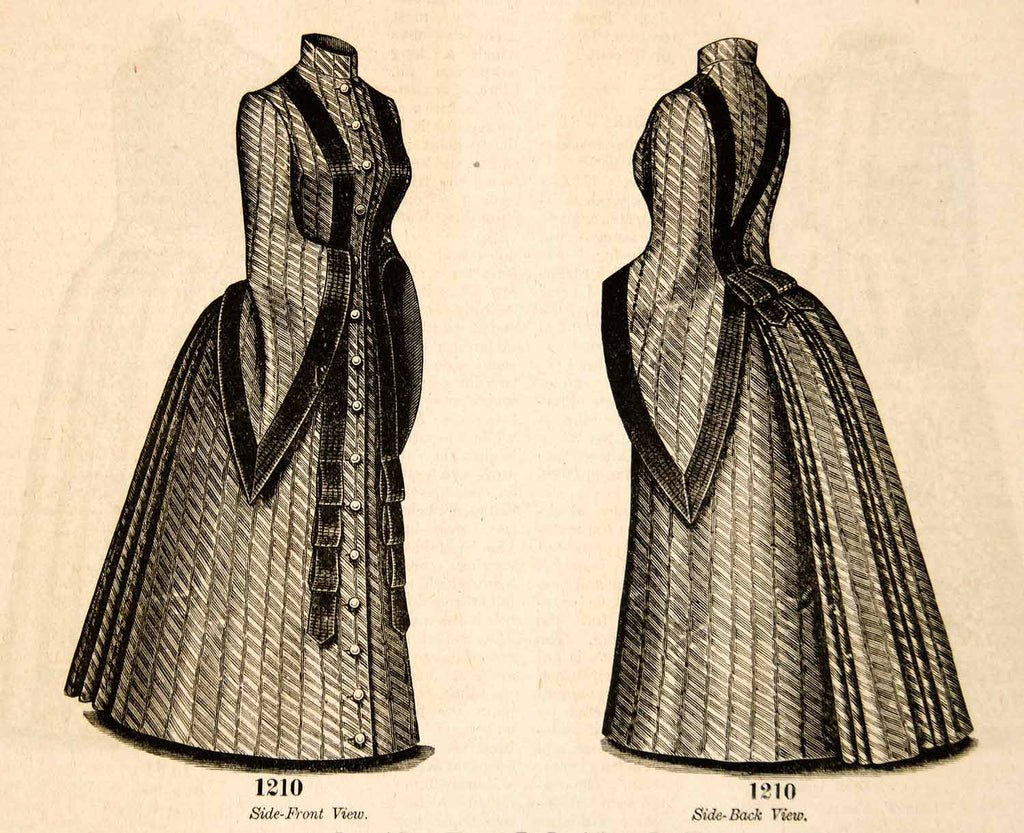1886 Wood Engraving Victorian Gown Dress Costume Fashion Clothing Bustle YDL1