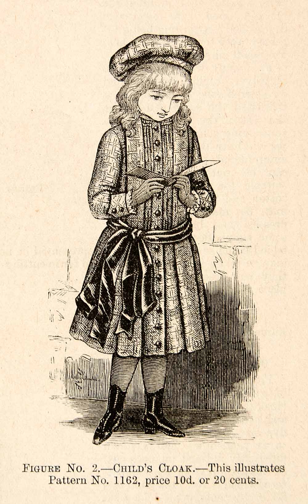 1886 Wood Engraving Young Victorian Girl Child Costume Fashion Clothing YDL1