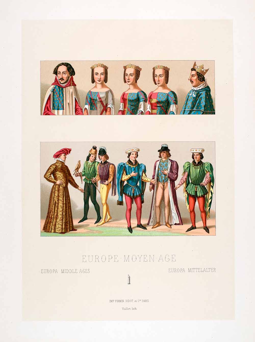1888 Chromolithograph Medieval French Nobility Costume Historical Figures LCH3