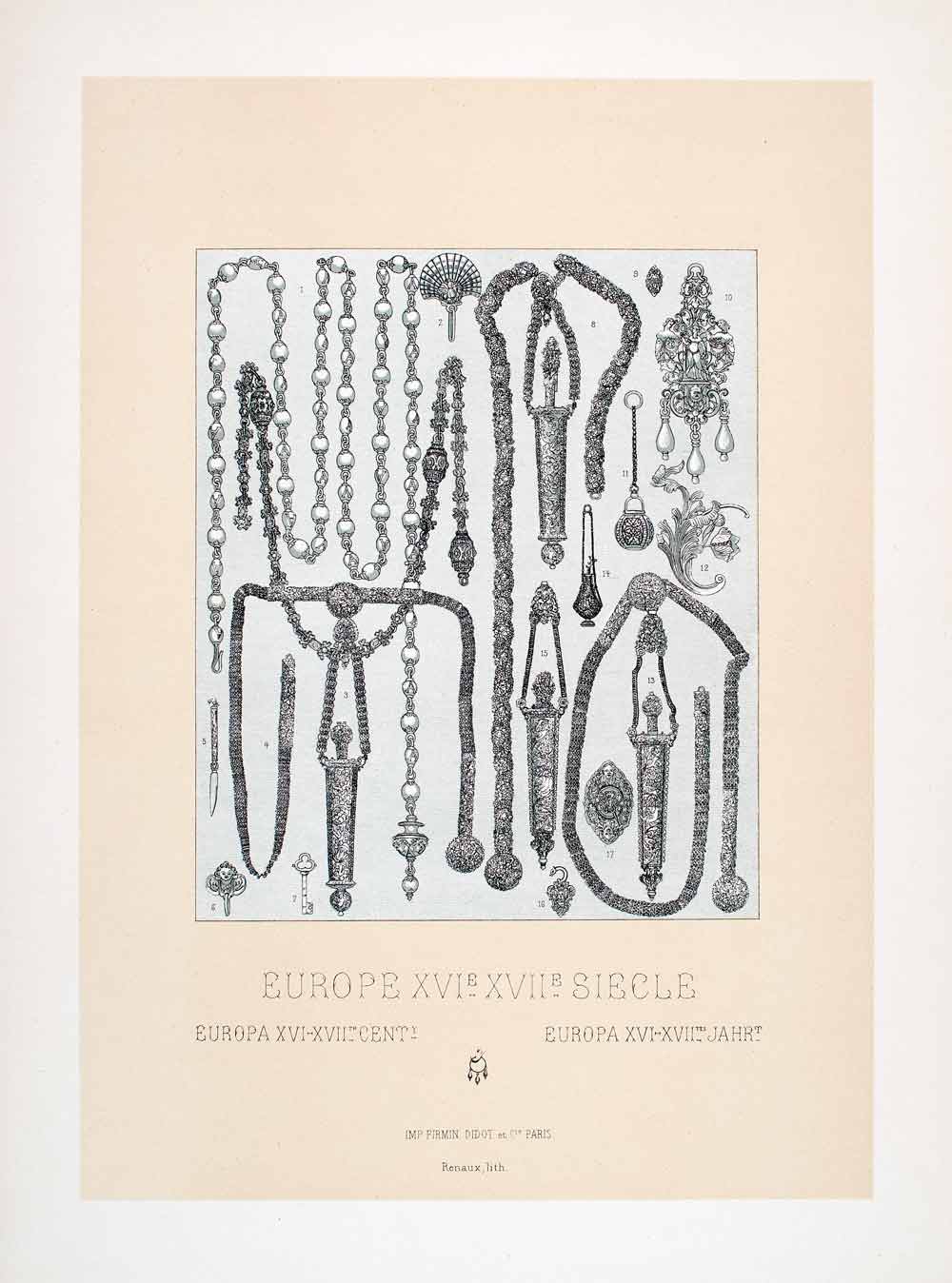 1888 Chromolithograph Historic Jewelry Necklace Brooch Pearl Chain Fashion LCH3