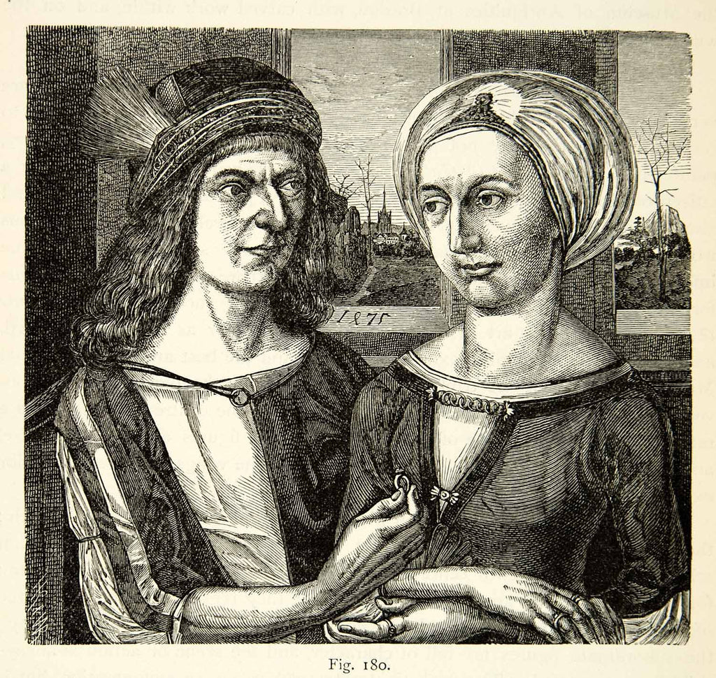 1888 Wood Engraving Portrait Michael Wolgemut Figures Historic Fashion XACA9