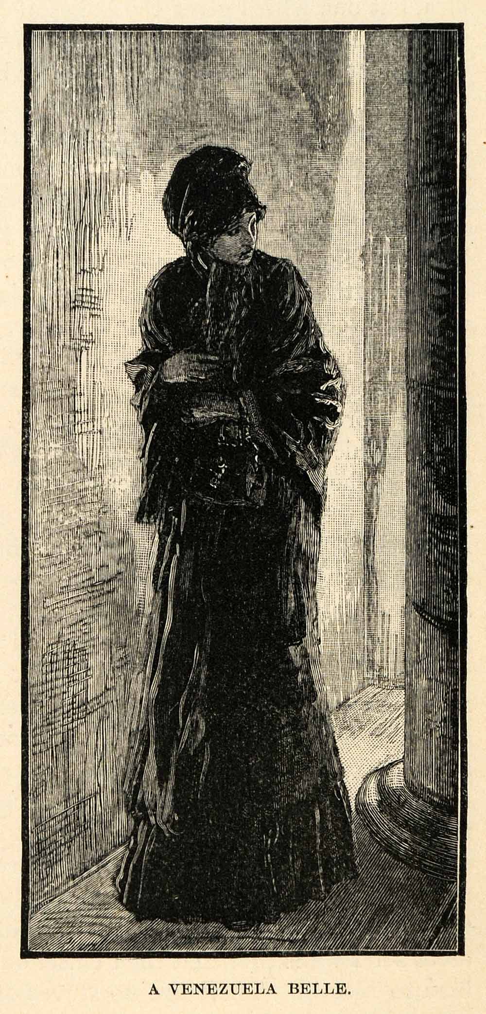 1888 Wood Engraving Venezuela Belle Caracas Costume Portrait Woman South XGU6