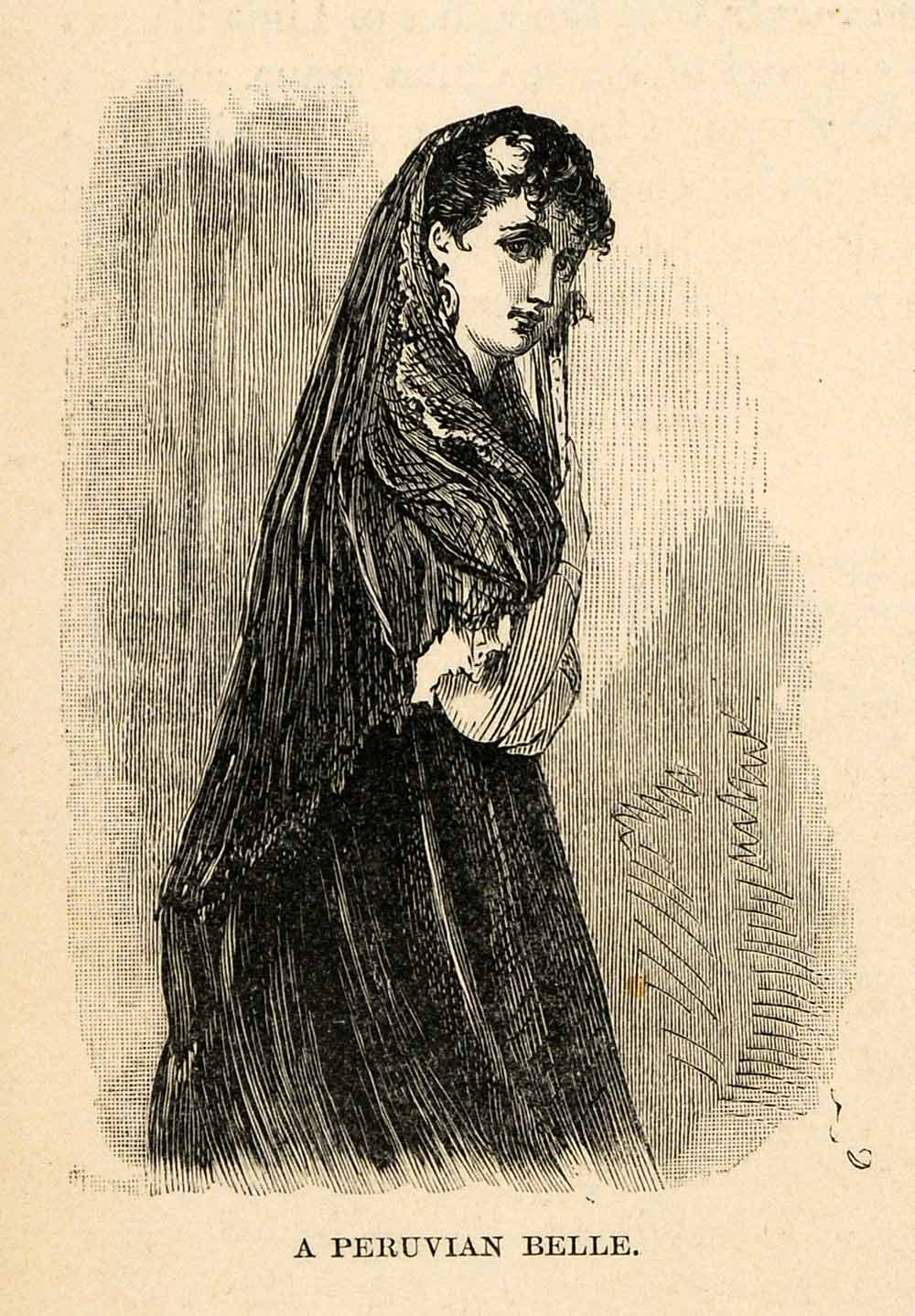 1888 Wood Engraving Peruvian Belle Costume Fashion Woman Portrait South XGU6