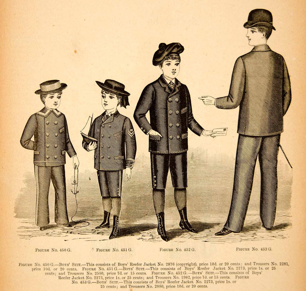1889 Wood Engraving Children Boys Fashion Clothing Reefer Jacket Suit YDL7