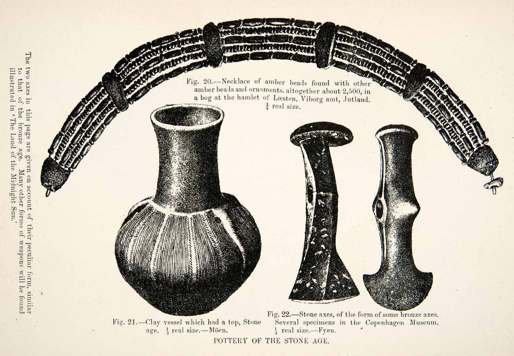 1889 Wood Engraving Necklace Hamlet Loesten Viborg Jutland Clay Vessel XGYA7