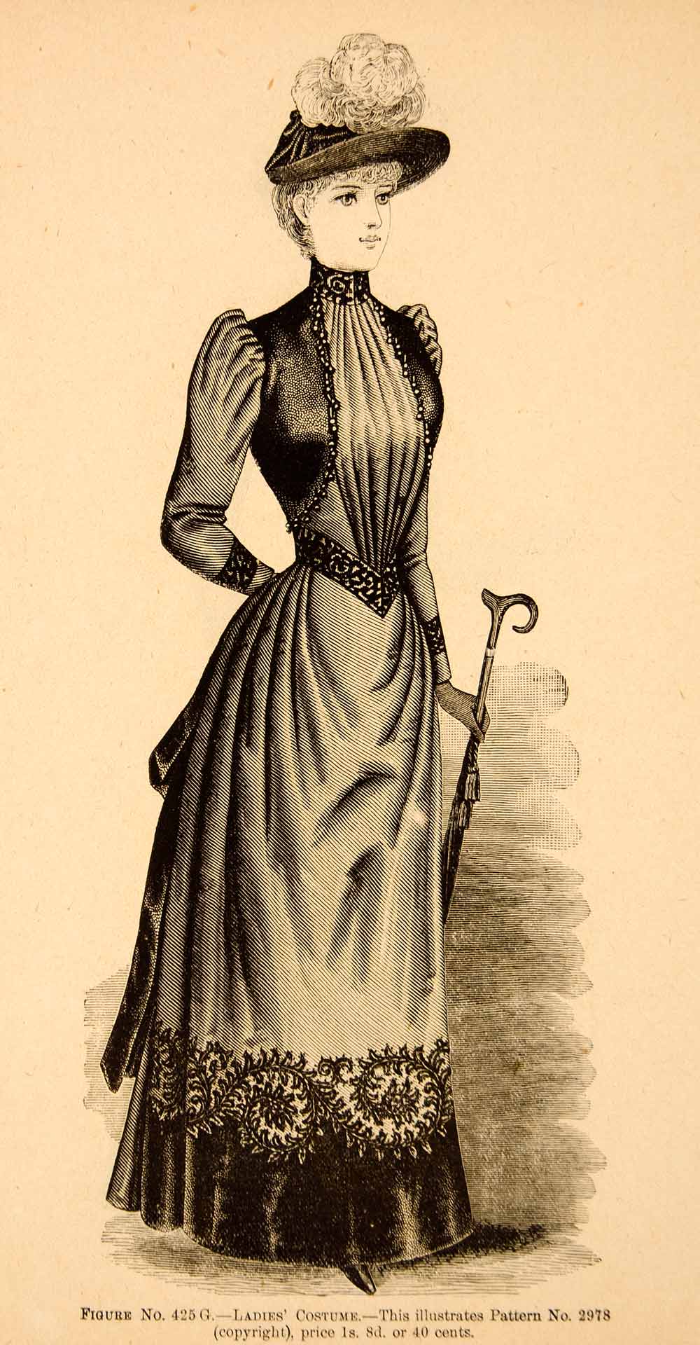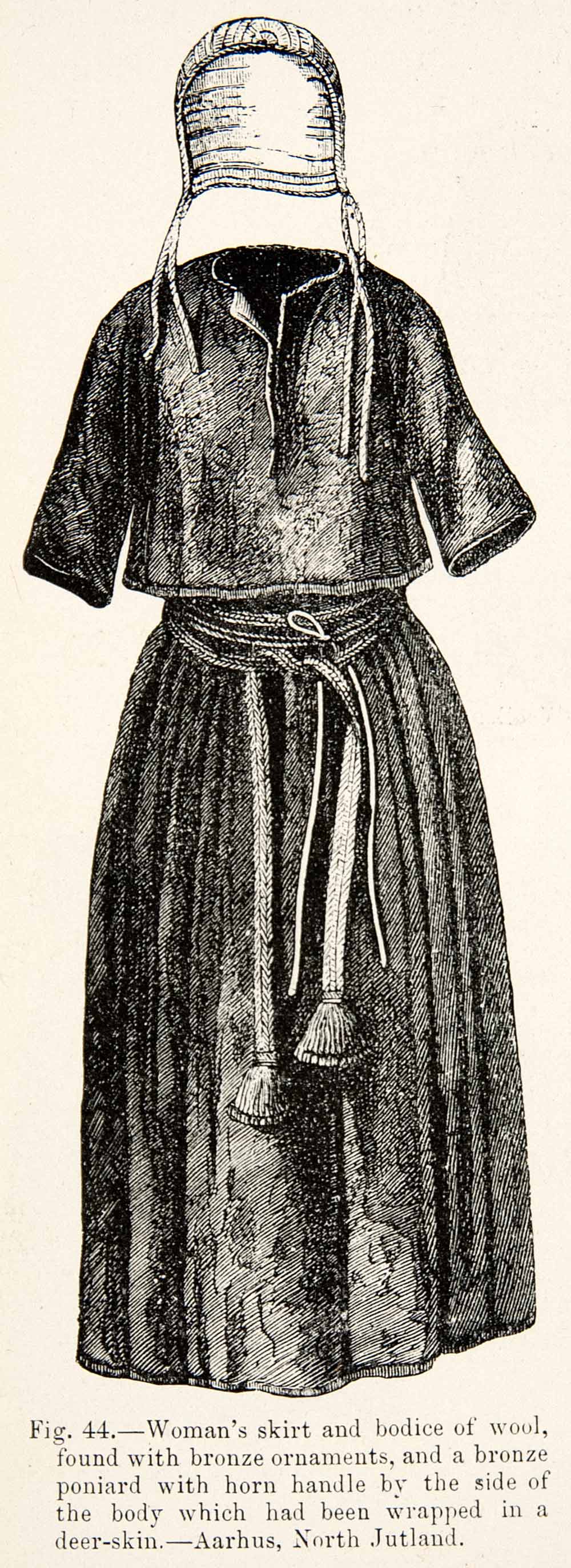 1889 Wood Engraving Woman Skirt Bodice Bronze Ornaments Poniard Body XGYA7